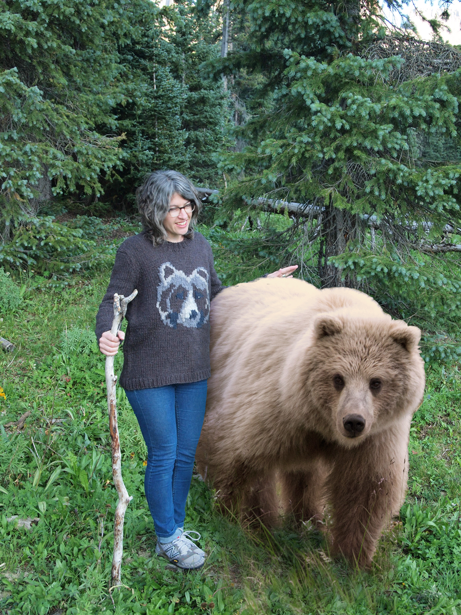 Jaime knit her shawl using the mysterious colorways of Madelintosh Light Cosmos and Lowlands. Between the cosmos and the lowlands, her shawl encompasses all of the universe, and her new Maenad shawl transports her to magical fairy forests whenever she puts it on. (She made me write that.)